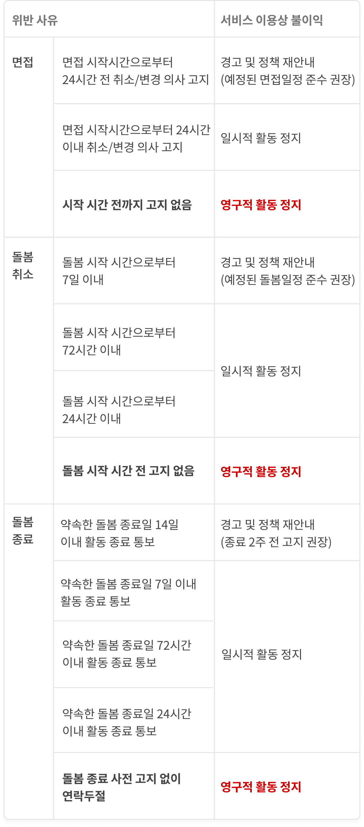 그러니 돌봄약속 시간은 꼭 지켜주시고 피치못할 상황으로 돌봄 취소 또는 변경을 하셔야 할 때는