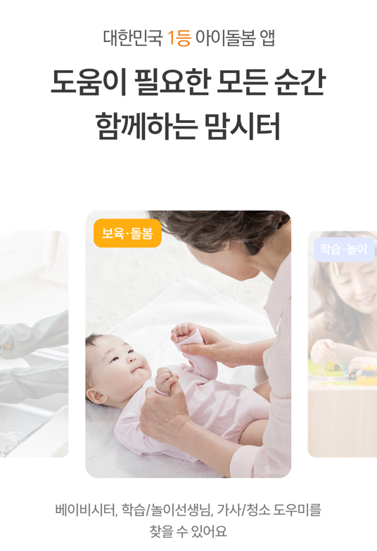 맘시터는 현명한 엄마아빠의 육아 필수앱이에요!맘시터 앱은 서로의 정보를 자유롭게 확인하고, 인터뷰를 신청하거나 제안받을 수 있는 구인/구직 플랫폼이에요.